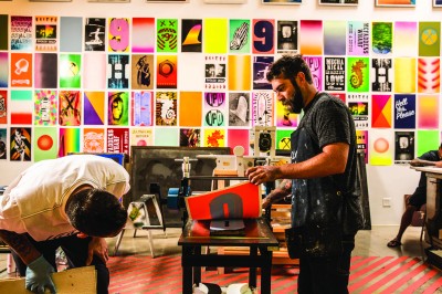 すでにアメリカでは各所で展開されてきた。ハンティントンビーチでのUSオープン開催時(7月20日から28日)には、シルクスクリーンで刷る行程の披露に加え、多くの作品が展示された。